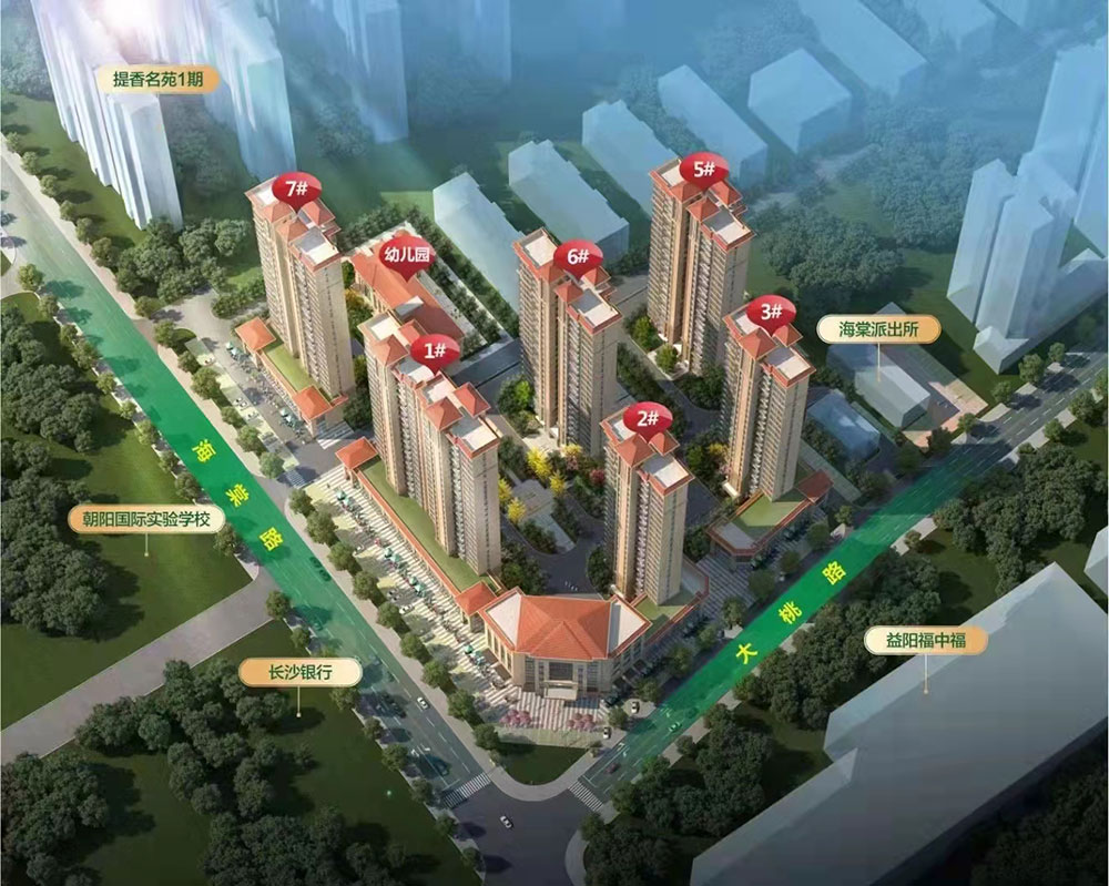 • 缇香名苑二期项目位于赫山区朝阳国际实验学校对面