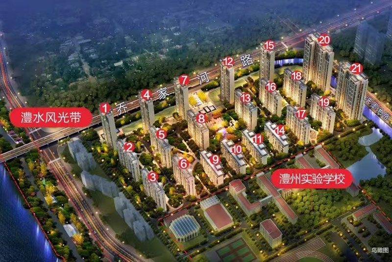澧县澧州龙城落位在乔家河路与洗墨池路交汇处,开发商:澧县大汉置业有限公司