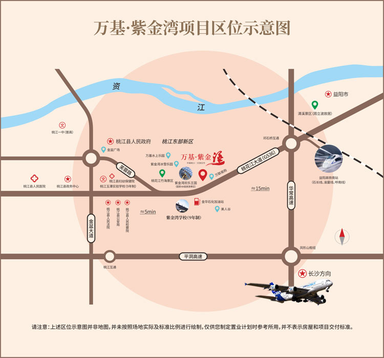 桃江万基·紫金湾由万基铭臣房地产开发有限公司所开发,项目西靠竹海风景区、毗邻桃益公路,紧邻益阳高铁站、益马高速路口,交通条件优越。项目由联排、双拼、独栋别墅、高层及商业街组成,以生态住宅的规划思想,法式建筑风格,缔造有深度的尊宅邸。
