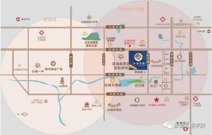 江南学府位于汝城大道与和平路交汇处,新老城区中心交界位置,不仅可以享受老城区的繁华,也能拥有新城区的舒适。项目东临汝城大道,西临滨河东路,南临和平路,交通便利。整个项目批准用地为91亩,总占地面积55646平方米,总建筑面积204128.76平方米,容积率3.0,绿化率32.49%,由7栋高层(26层),2栋小高层(17层)、1栋4层住宅楼,1栋3层5000平方米公办幼儿园组成,共计1228户,分二期开发。