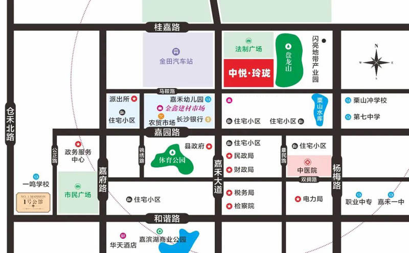 中悦·玲珑项目位于嘉禾大道与马鞍路交汇处,北临法治广场,西靠嘉禾大道,南靠马鞍路,东面紧临盘龙山,与金田汽车站仅一路之隔。项目总占地8690㎡,总建筑面积约41122㎡,其中住宅总建筑面积约为32739㎡,商业建筑面积为3017㎡,绿化率36.65%。开发商:嘉禾县中悦房地产开发有限公司