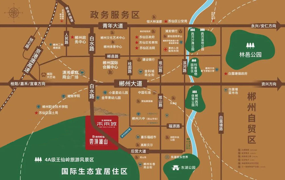 | 占地面积: 约63亩 | 建筑面积: 162101平米 | 开发商: 郴州市高视伟业房地产开发有限公司 |