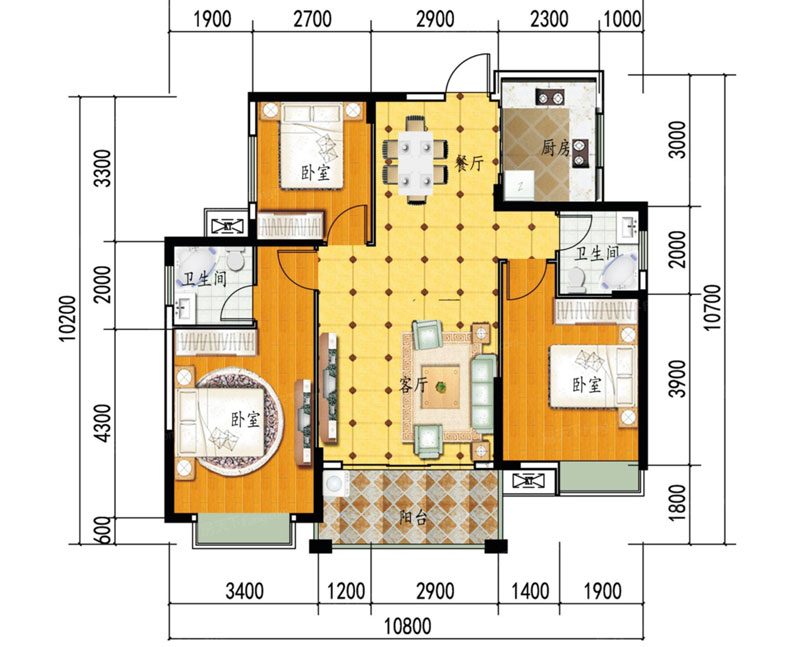 3室2厅2卫1厨